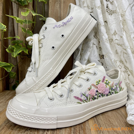 3 D Hand Embroidery Wedding Converse Low tops / Wedding Flowers Embroidered Shoes/ Bridal Flowers Embroidered Sneakers Wedding Flowers