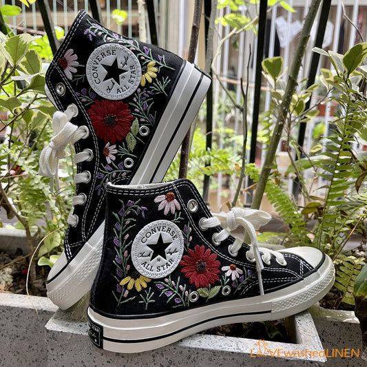 Copy of Custom Converse Chuck Taylor Flowers Embroidered Sneaker/ Wedding Flowers Embroidered Convesre/ Sunflower Embroidered Converse