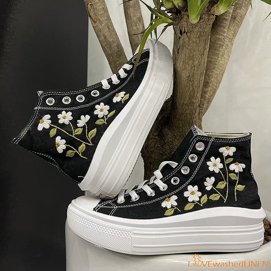 Custom Converse Chuck Taylor All Star Move Platform/ Custom Converse Embroidered Daisy Flower/ Embroidered Platform Sneakers