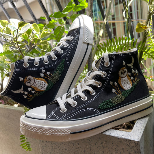 Custom Converse Chuck Taylor Embroidered / Embroidered Pretty Owl Shoes/ Converse Custom Wedding Shoes