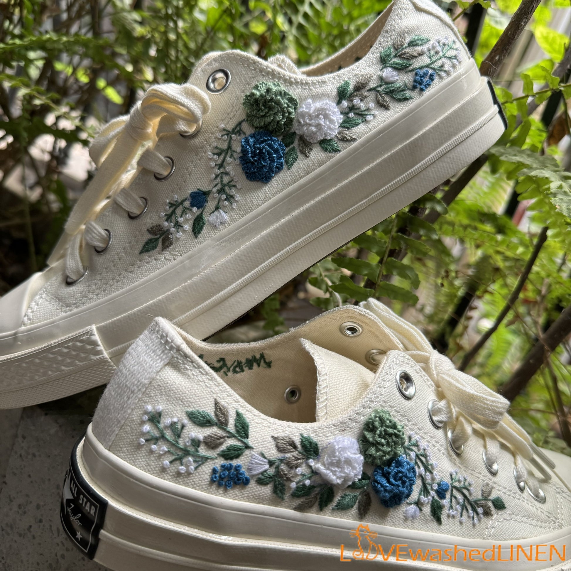 3 D Hand Embroidery Wedding Converse Low tops / Wedding Flowers Embroidered Shoes/ Bridal Flowers Embroidered Sneakers Wedding Flowers
