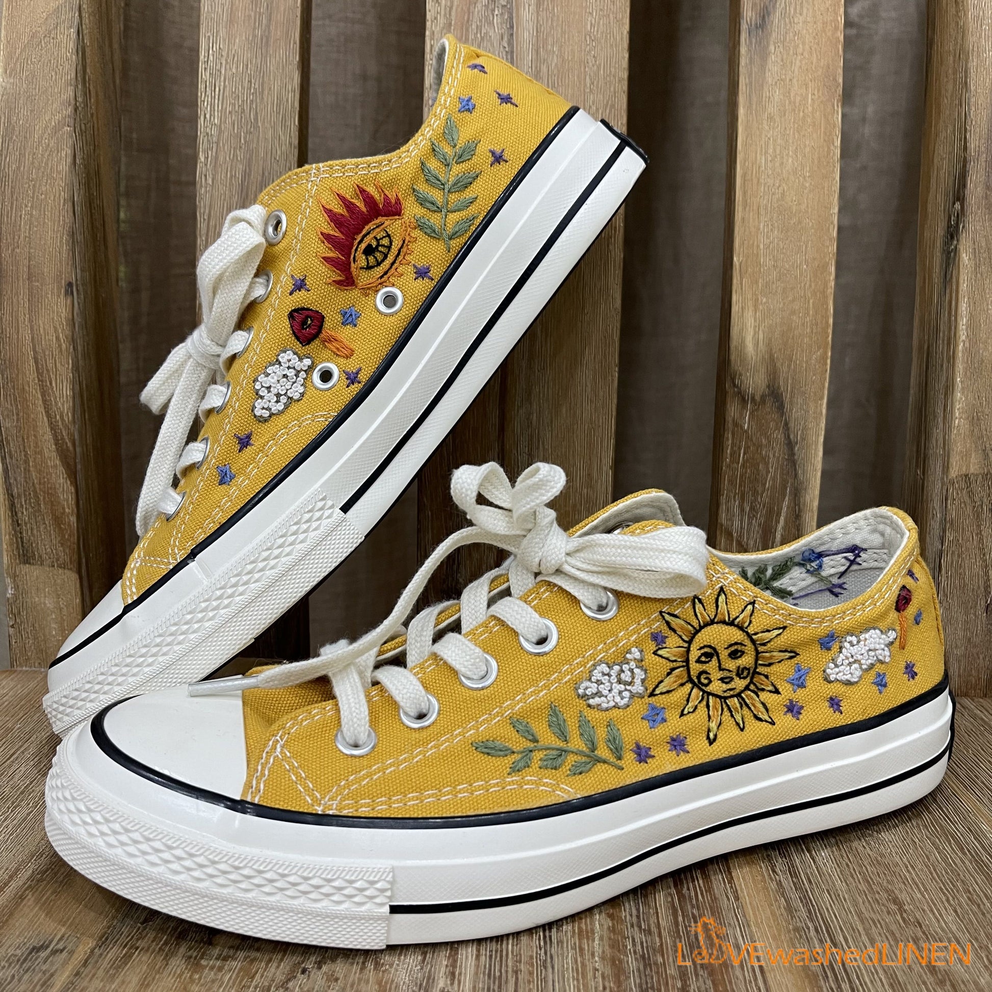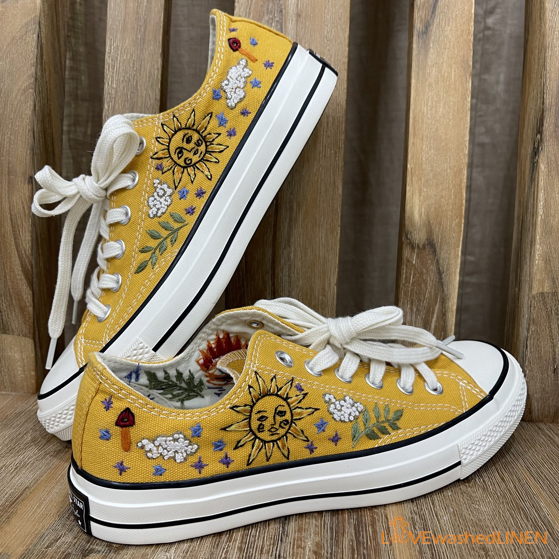 Custom Converse Chuck Taylor, Embroidered Celestial Art Embroidered Converse Low Tops / Celestial Embroidered Sneakers