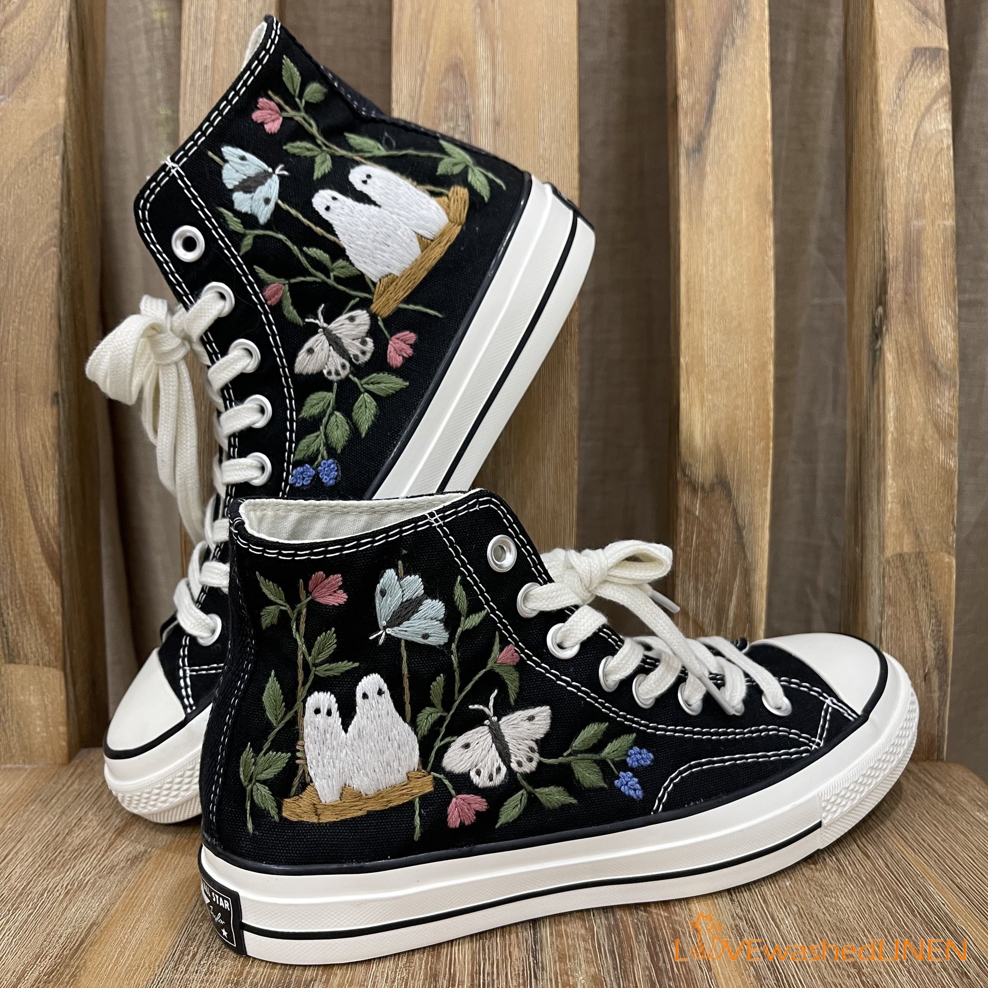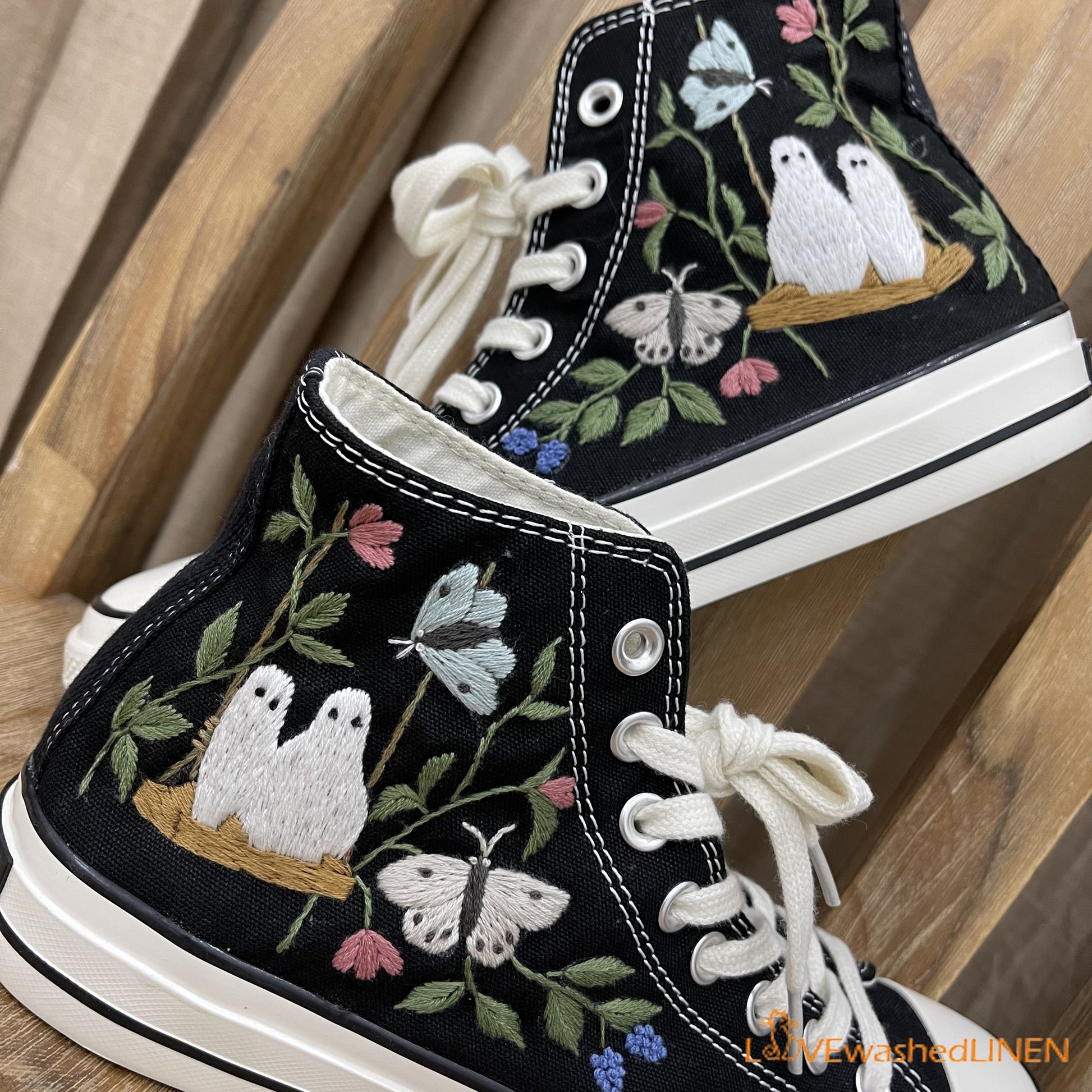 Custom Converse Chuck Taylor Embroidered/ Ghost Embroidered Converse/ Halloween Vibes Embroidered Sneakers