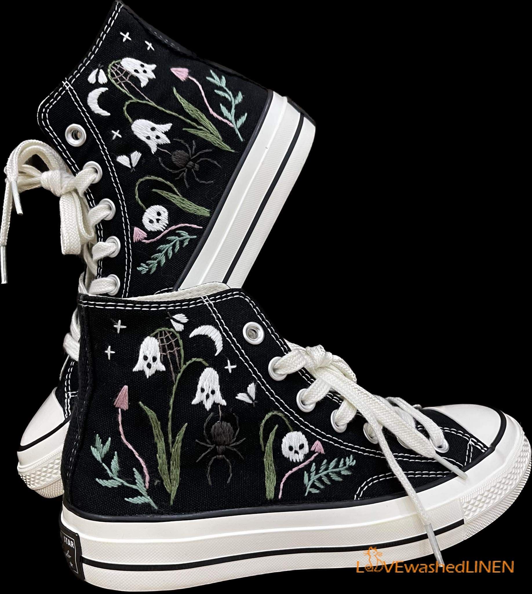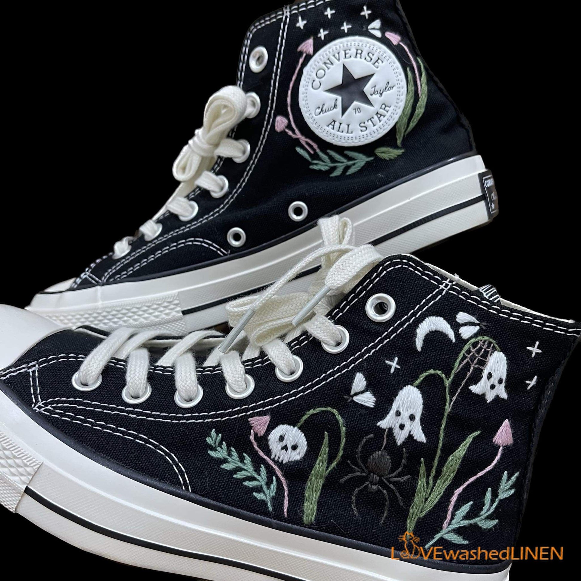 Custom Converse Chuck Taylor Embroidered/ Ghost Embroidered Converse/ Halloween Vibes Embroidered Sneakers
