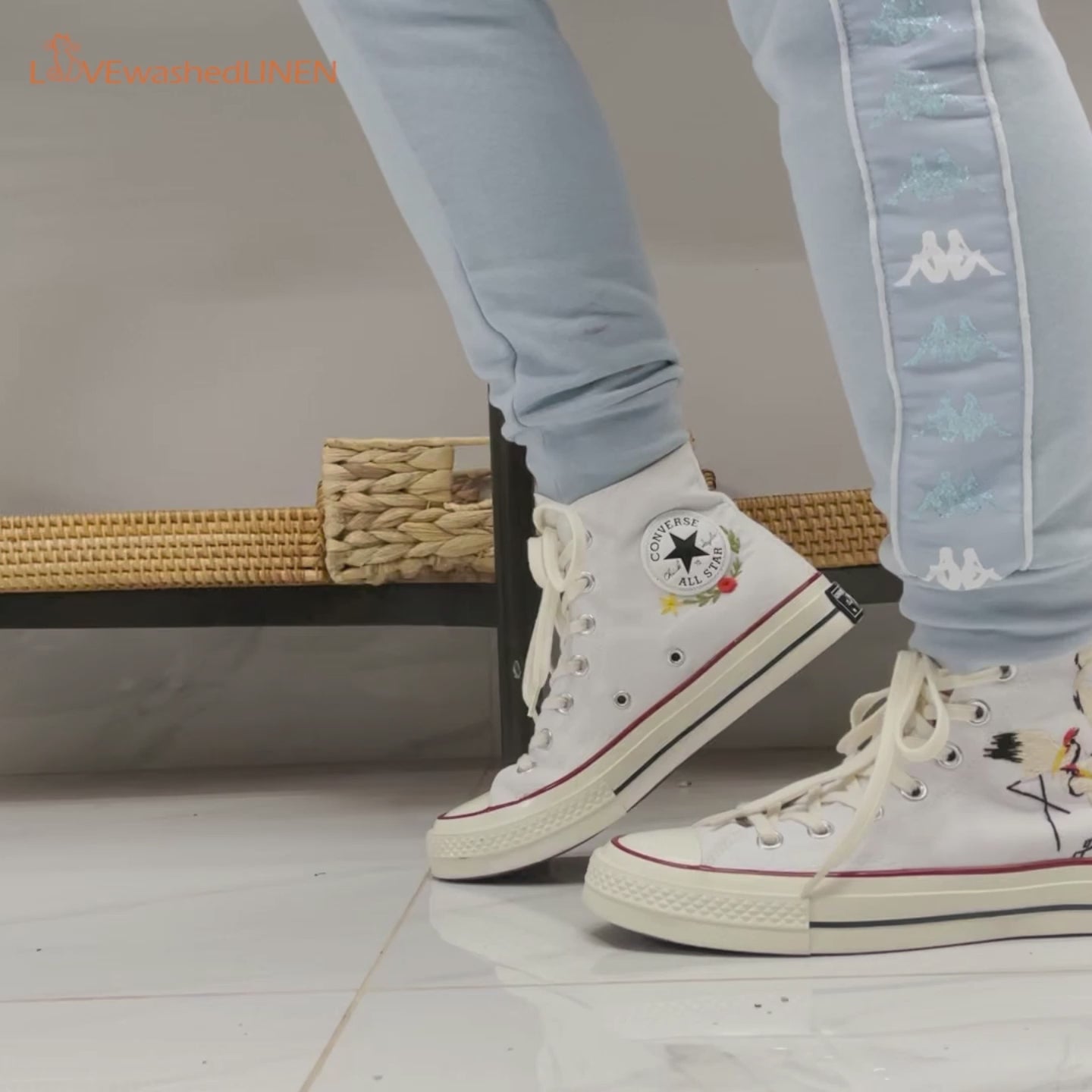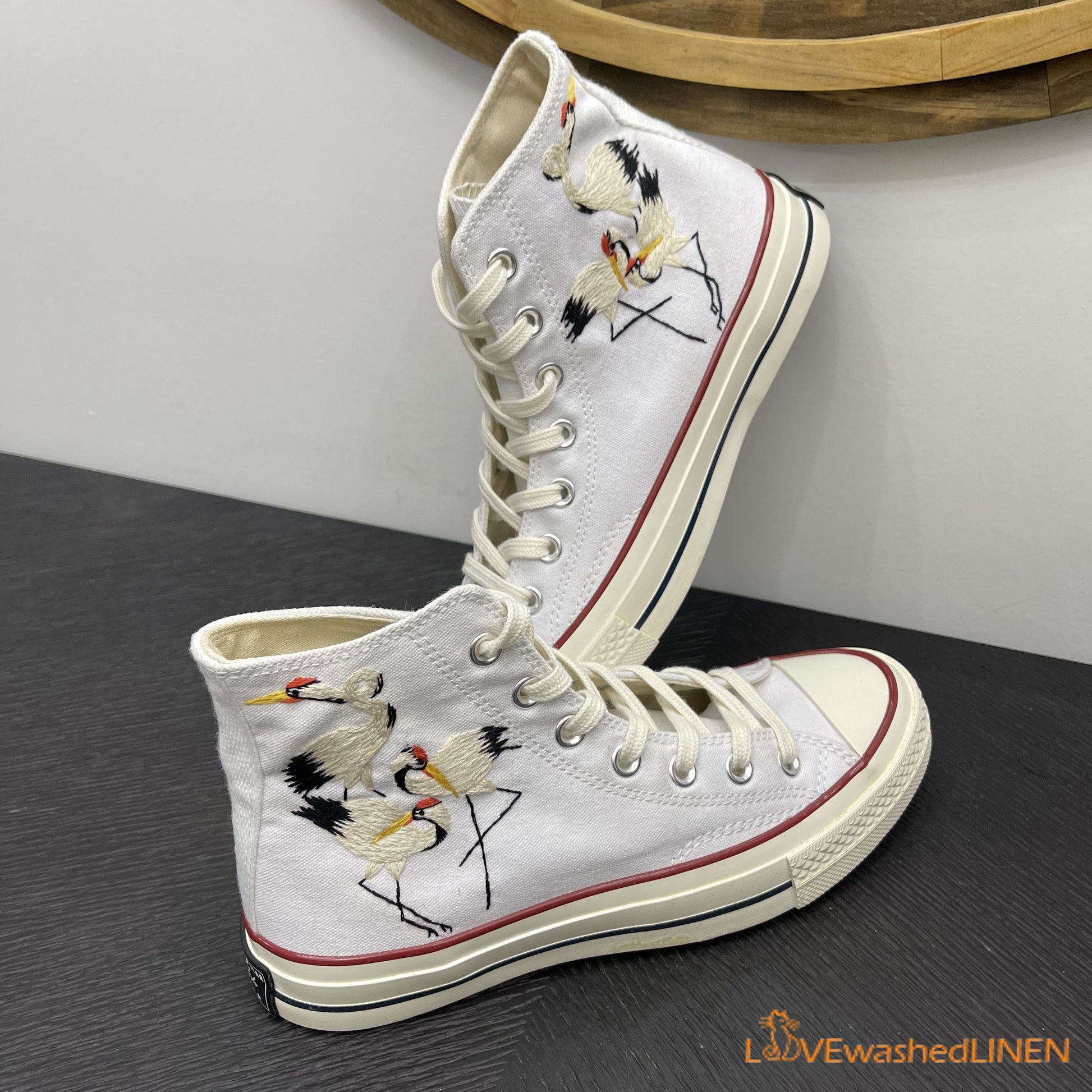 Custom Converse Chuck Taylor Embroidered Red-crowned Cranes Converse/ Embroidered Converse Custom /Wedding Embroidered Shoes