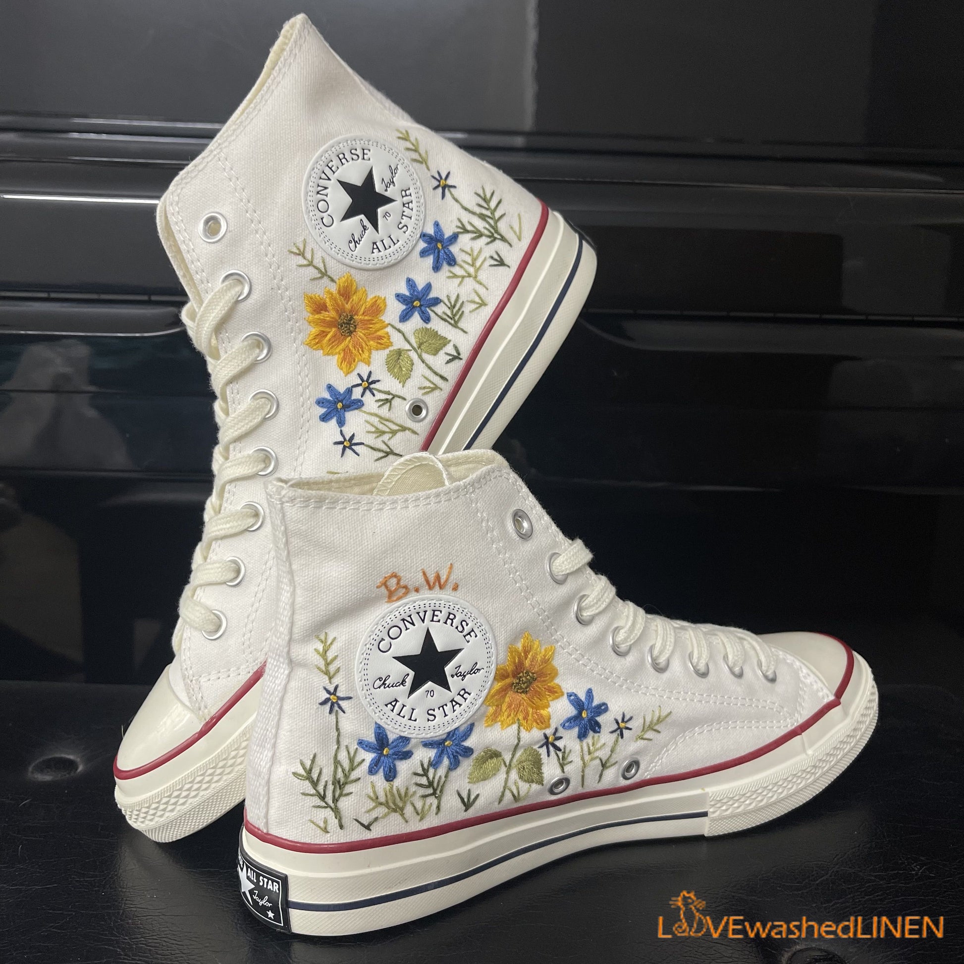 Custom Converse Chuck Taylor Flowers Embroidered Sneaker/ Wedding Flowers Embroidered Convesre/ Sunflower Embroidered Converse