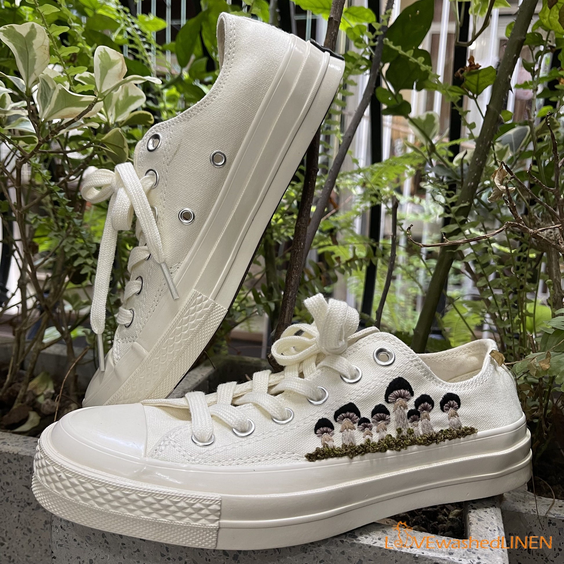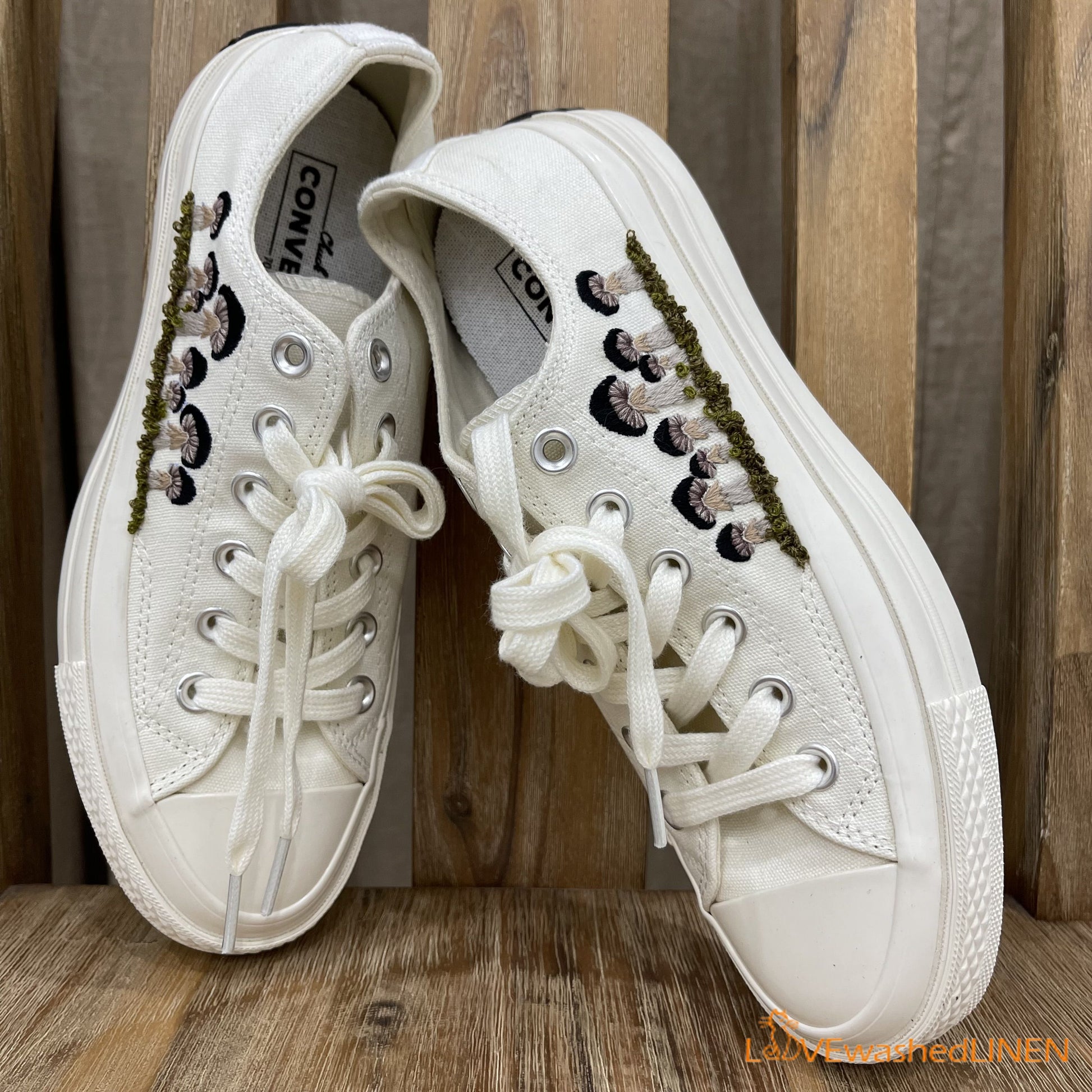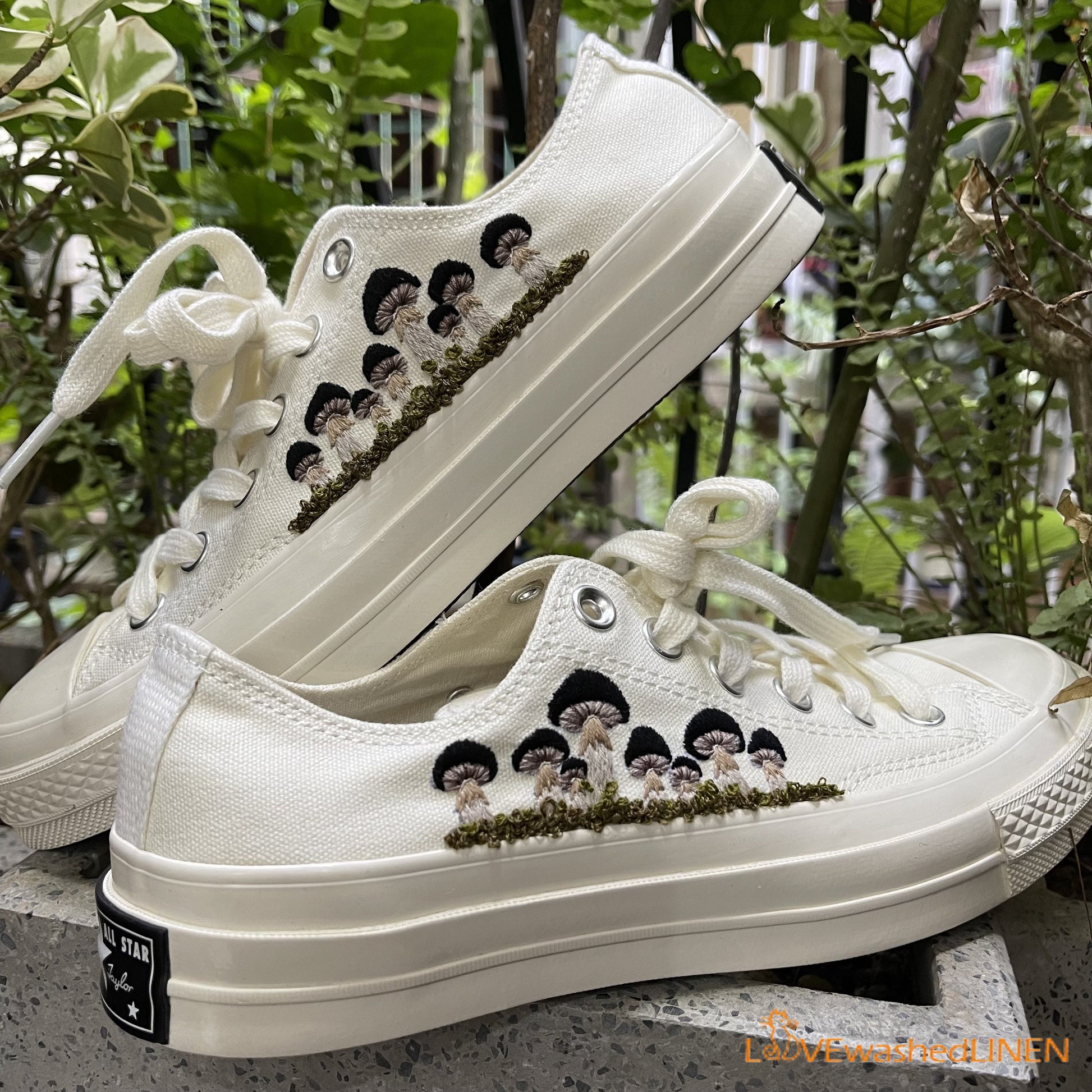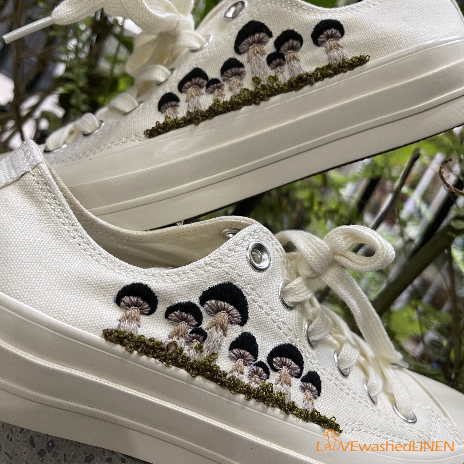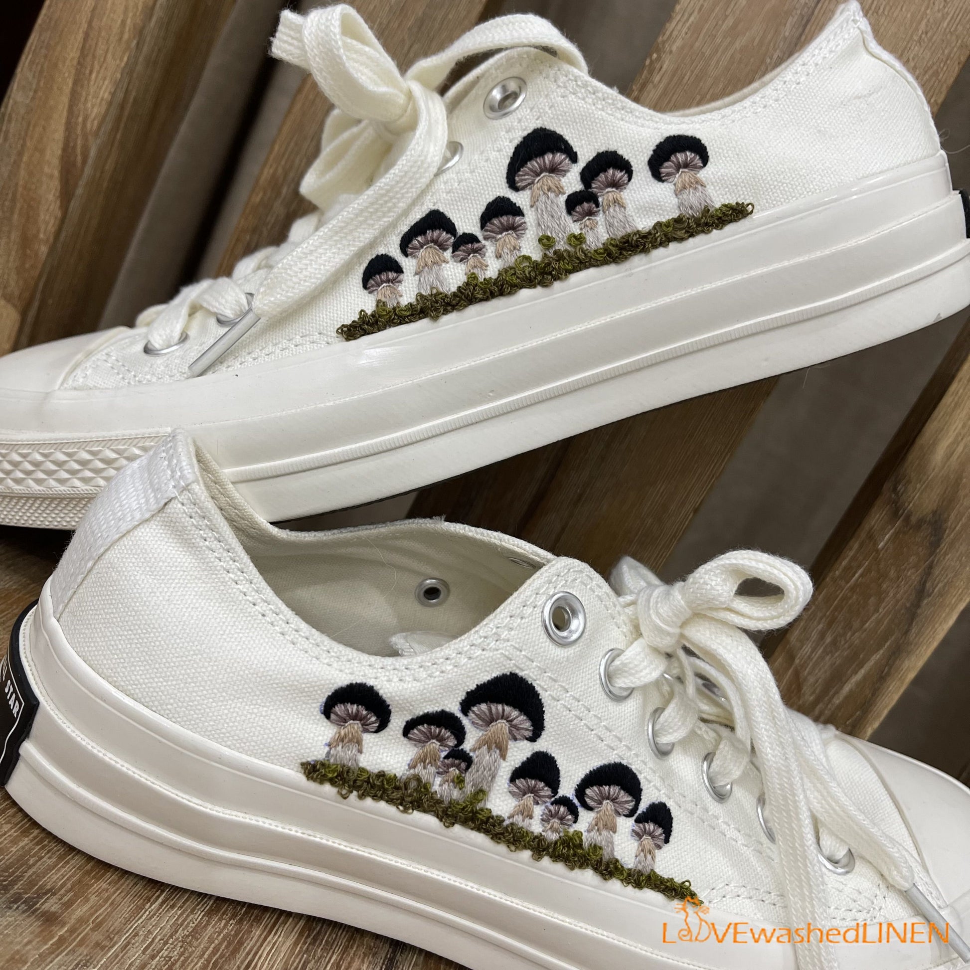 💚 Cute Mushrooms with embroidery color scheme of black and white bring an elegant looking to your Converse 💚
