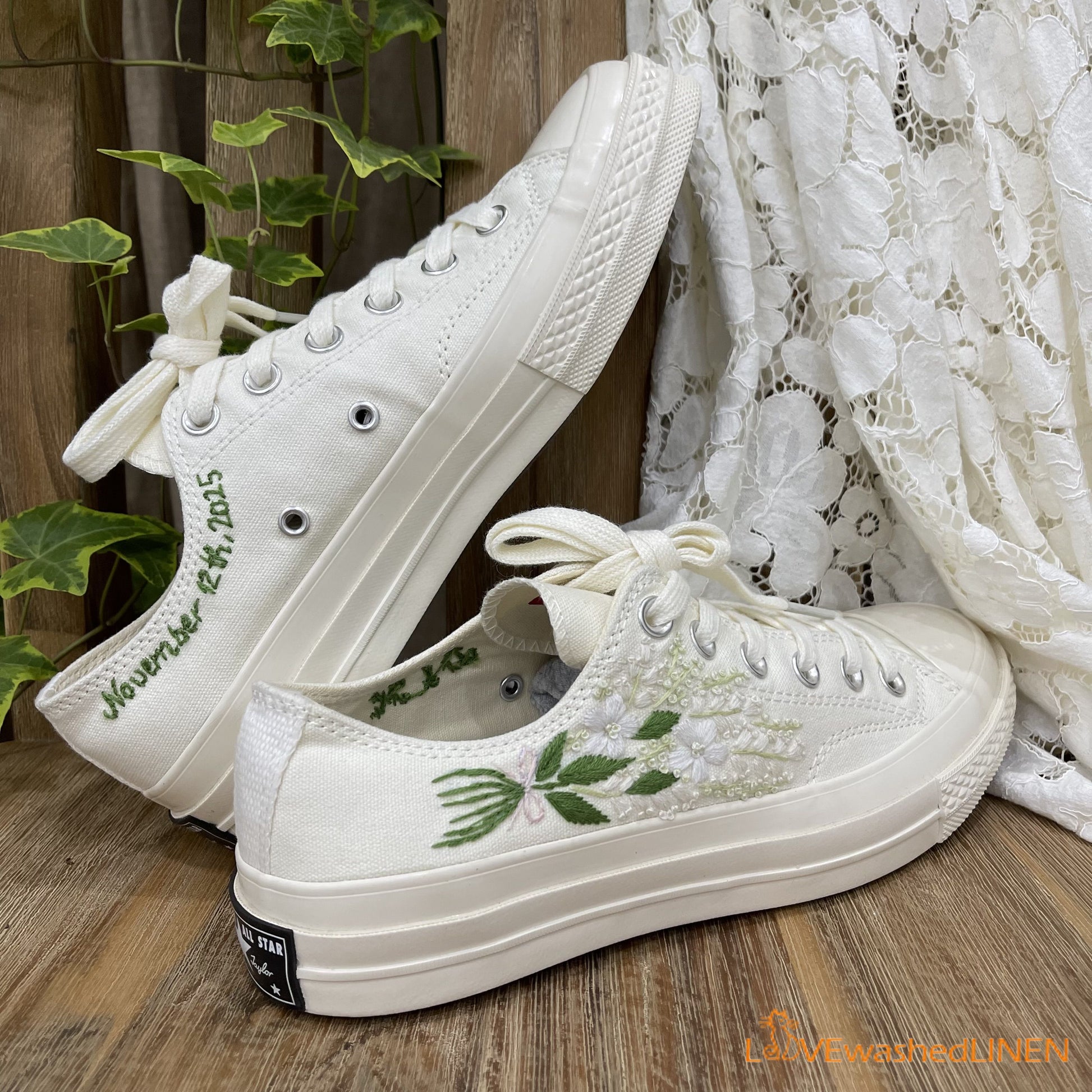 Custom Coverse Chuck Taylor/ Wedding Flowers Embroidered Converse/ Bridal Flowers Embroidered Sneakers Wedding Flowers Embroidered Sneakers/