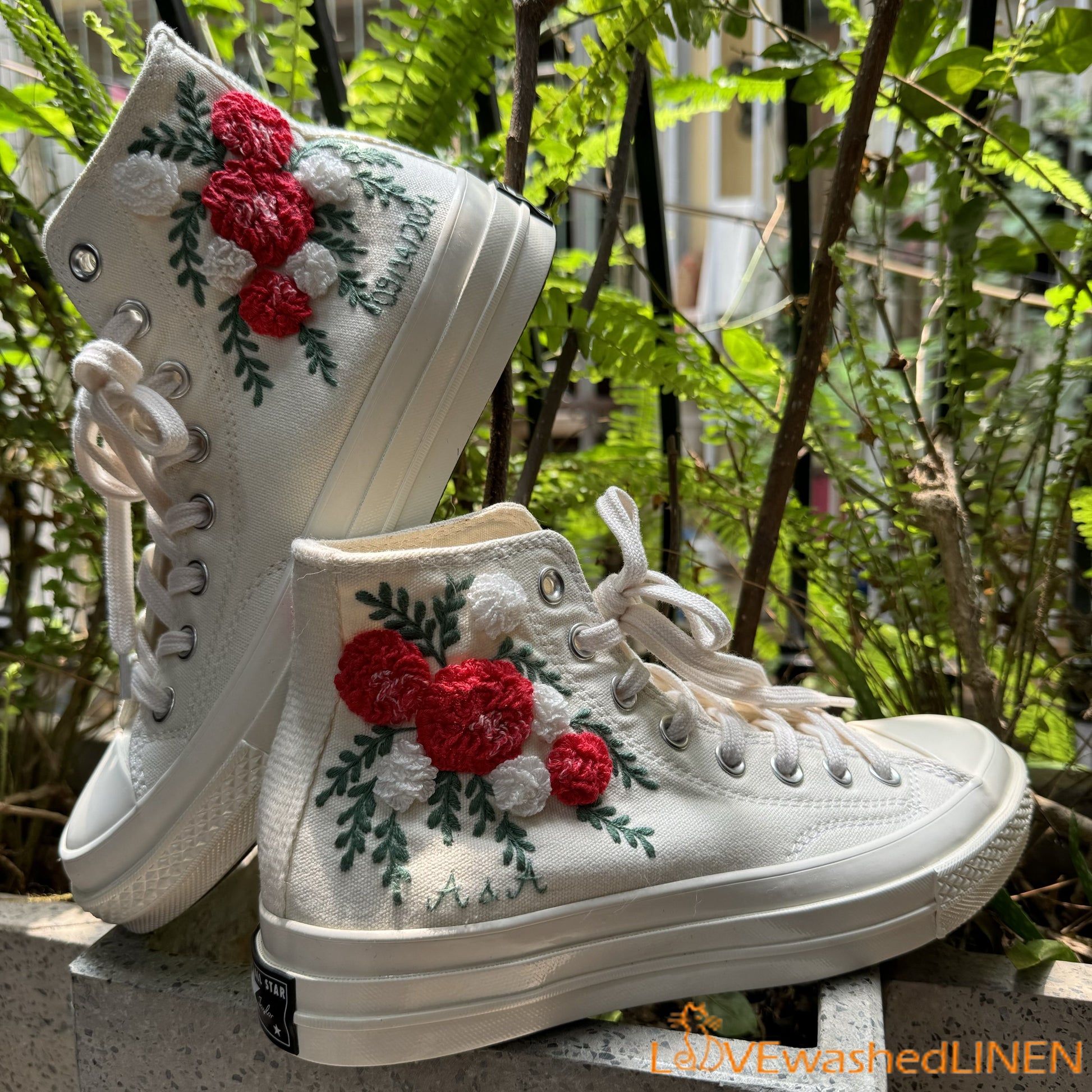 Custom Embroidered Wedding Sneakers/ Wedding Flowers Embroidered Shoes/ Bridal Flowers Embroidered Sneakers / Personalized Bridal Sneaker