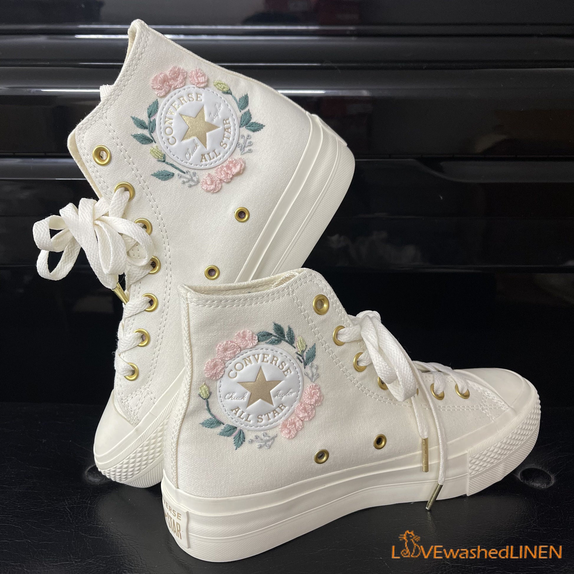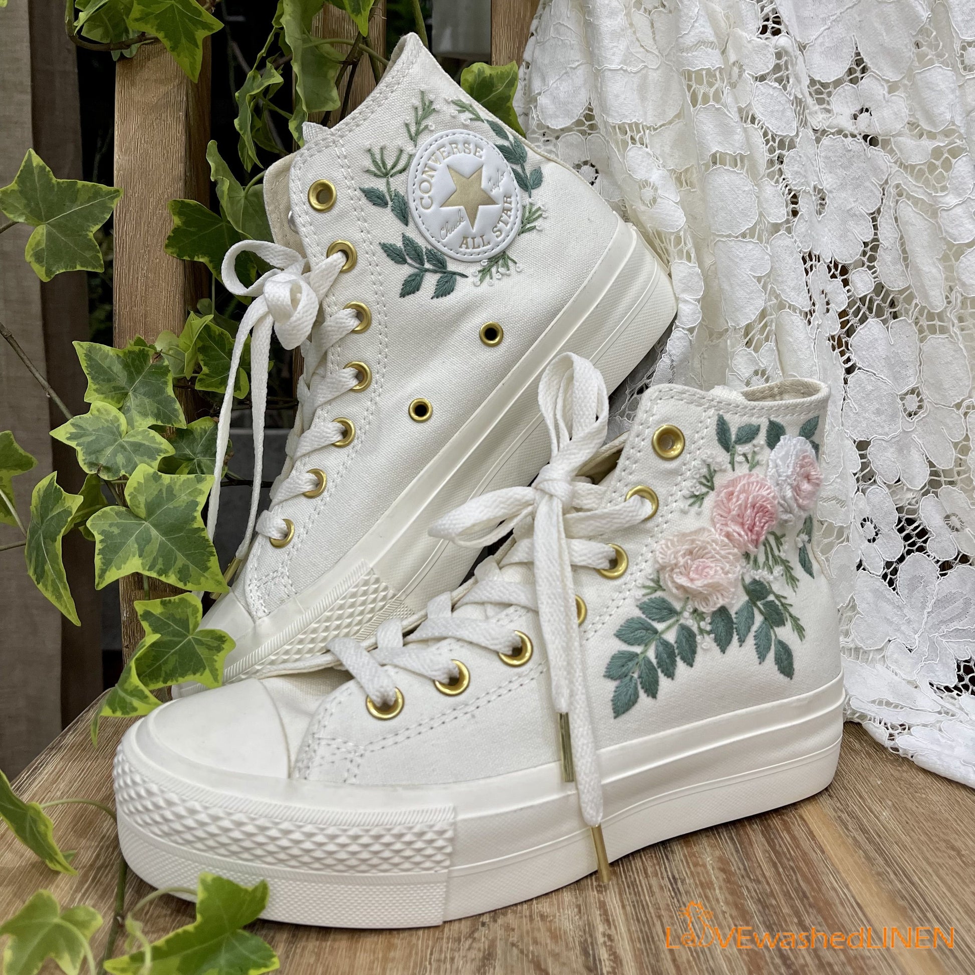 Custom Coverse Platform/Wedding Flowers Embroidered Converse/Bridal Flowers Embroidered Sneakers/Wedding English Roses Embroidered Sneakers