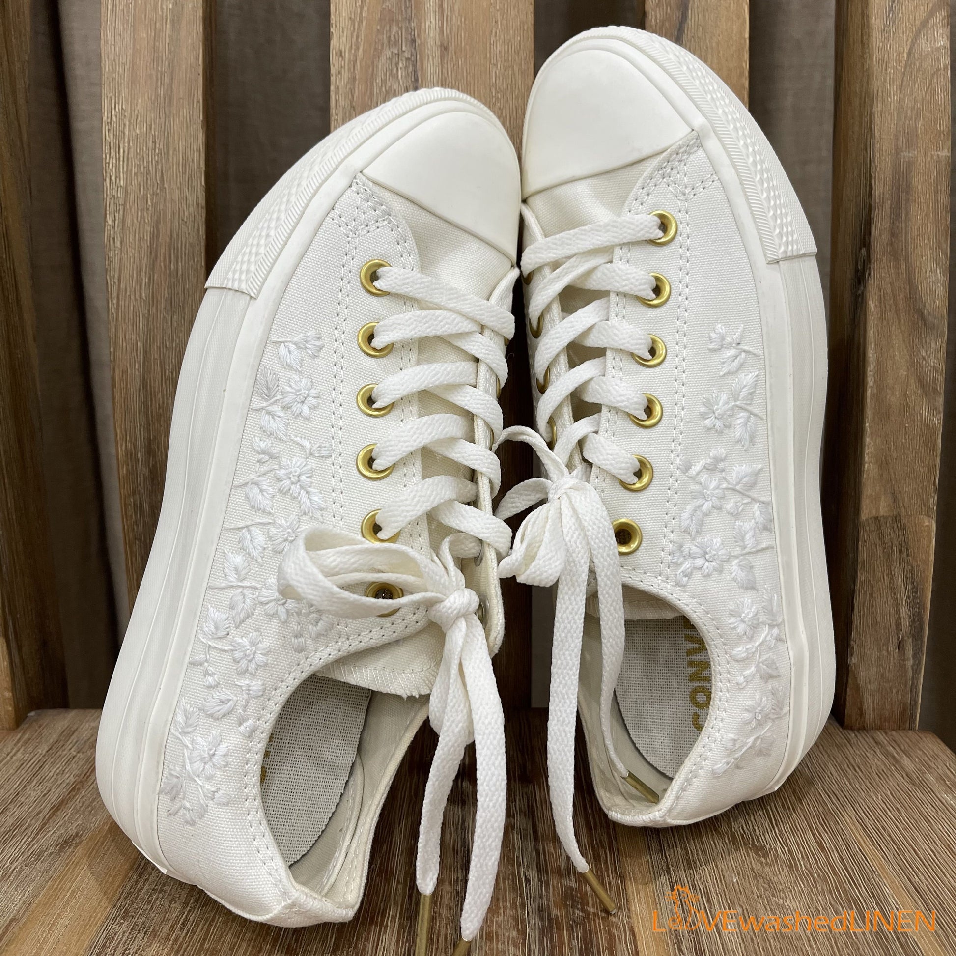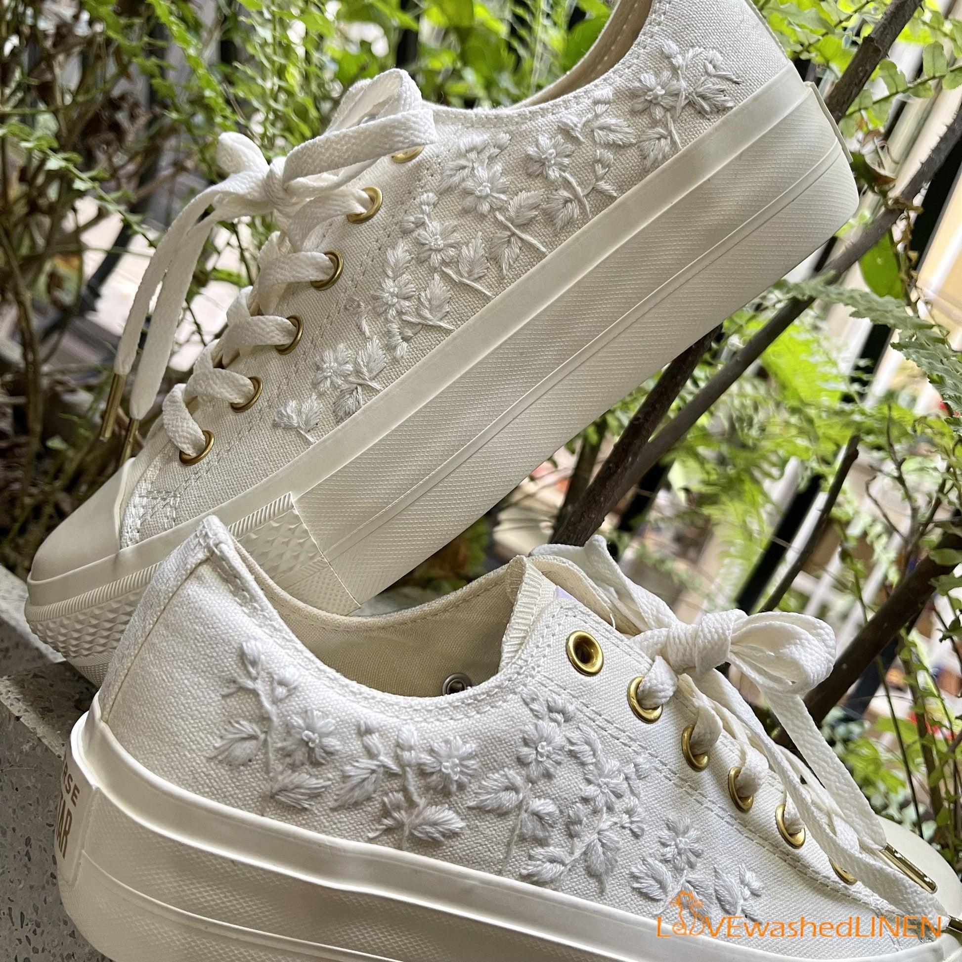 Custom Coverse Platform/ Wedding Flowers Embroidered Converse/ Bridal Flowers Embroidered Sneakers/ Lily of the Valley Embroidered Sneakers