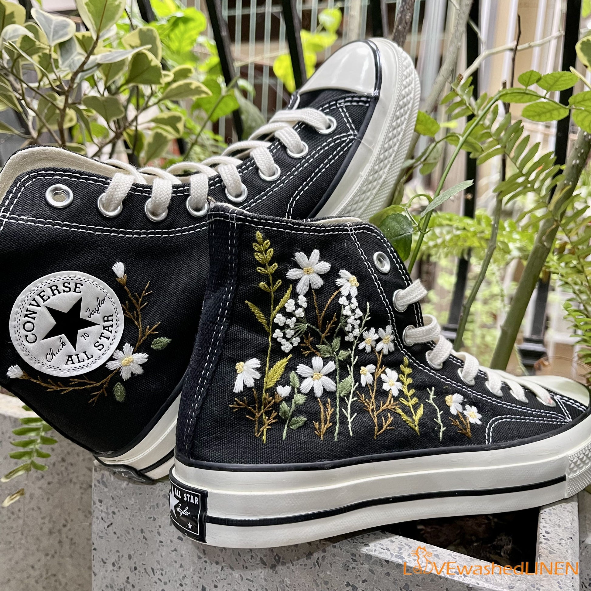 💚 The most loved rustic flowers are hand embroidered with love on your Converse 💚