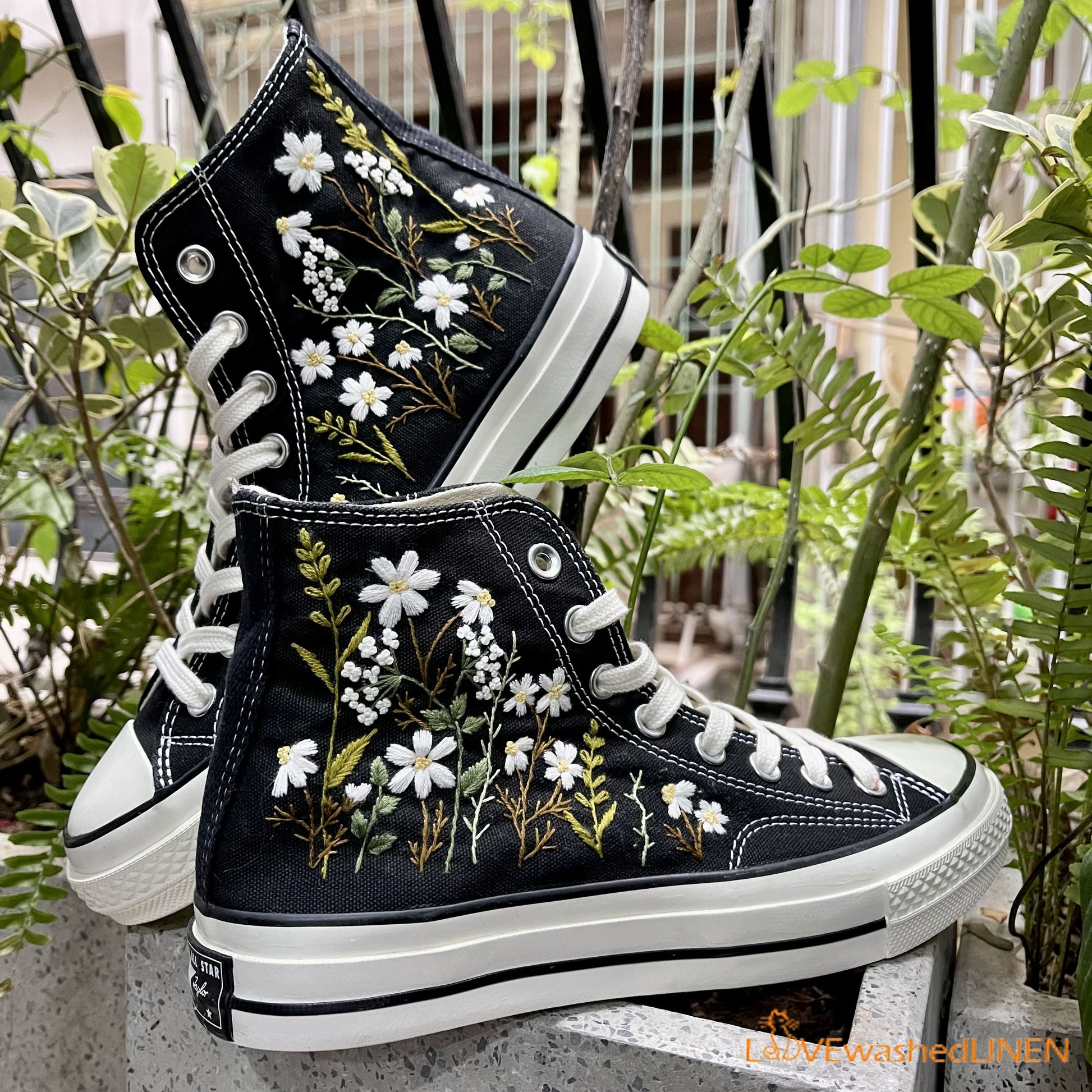 💚 The most loved rustic flowers are hand embroidered with love on your Converse 💚