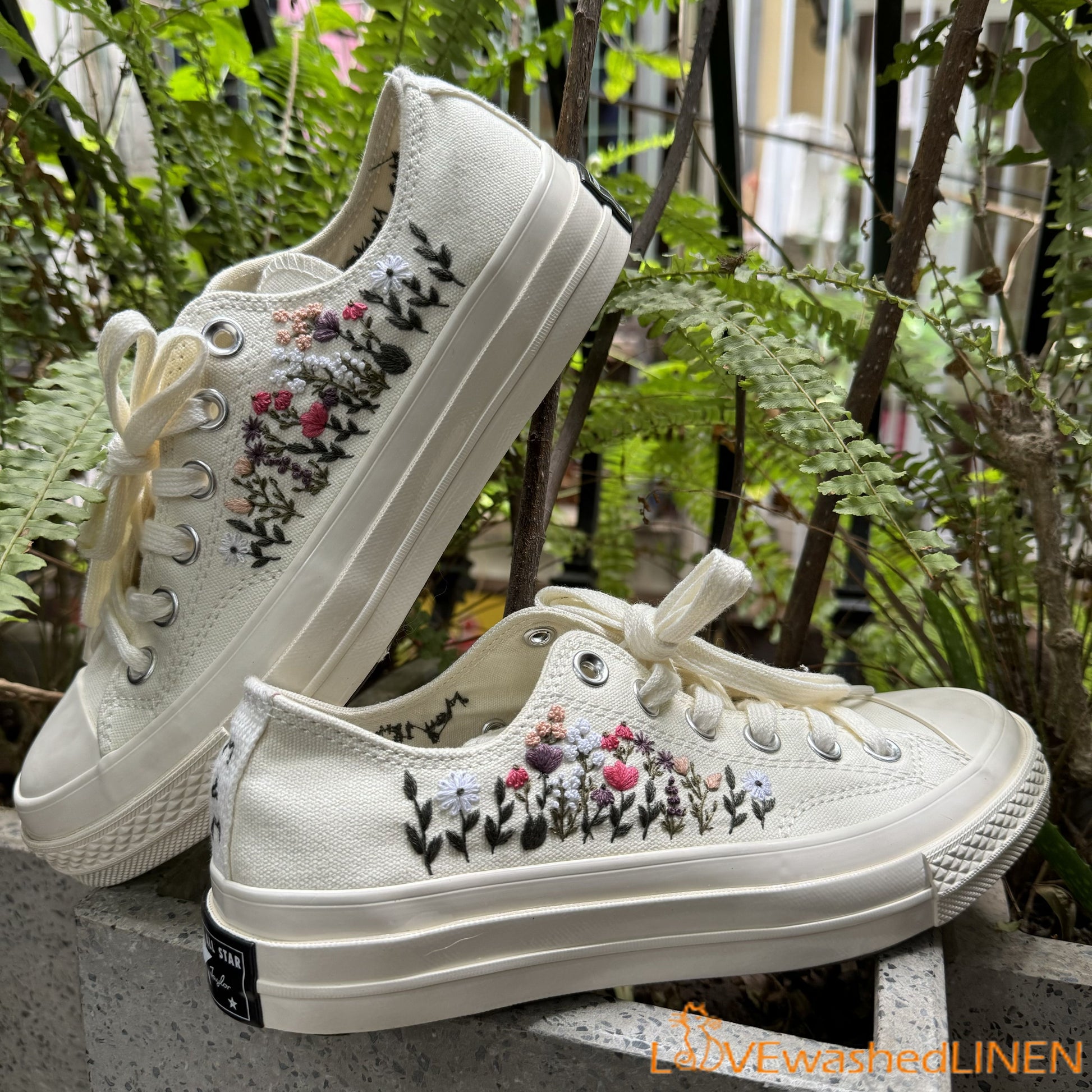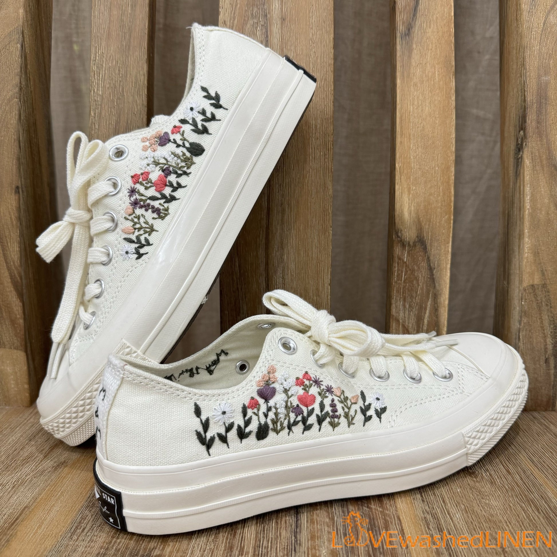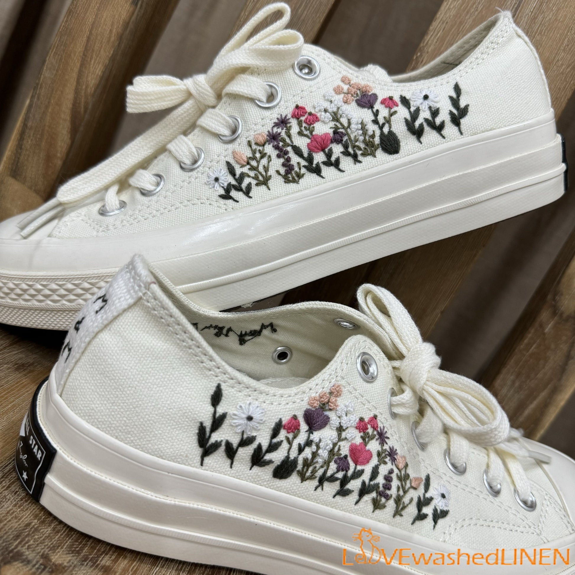 Custom Embroidered Sneakers/ Custom Shoes Taylor 70s Embroidered Flower/ Flowers Embroidered Shoes Low Tops/ Flowers Embroidered Shoes