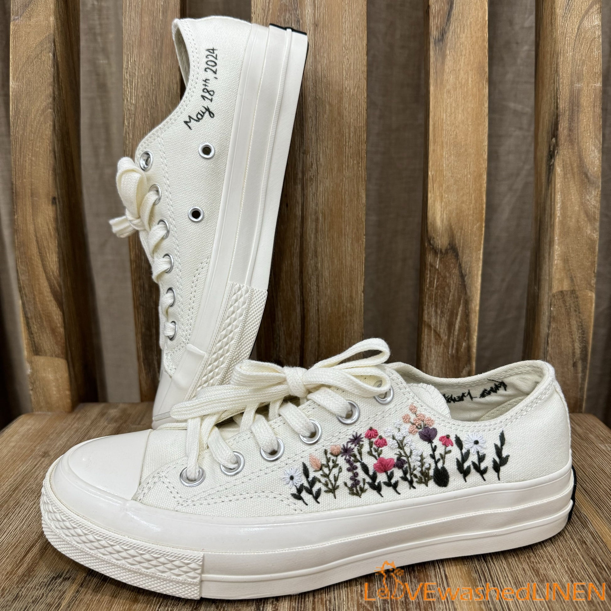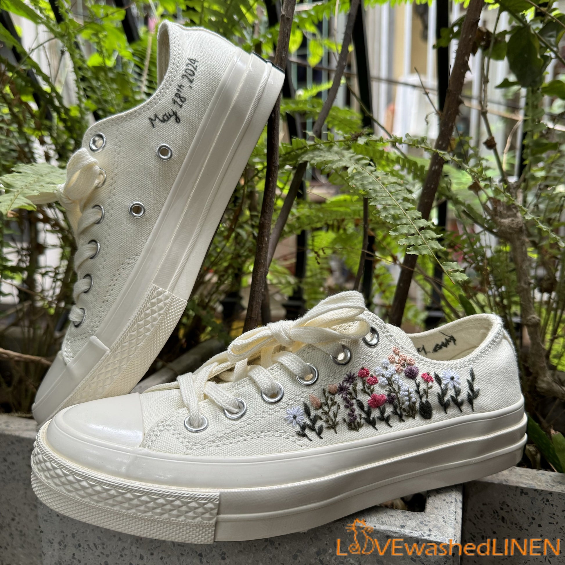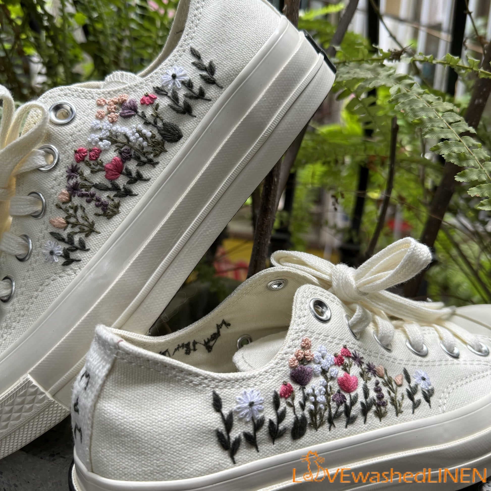Custom Embroidered Sneakers/ Custom Shoes Taylor 70s Embroidered Flower/ Flowers Embroidered Shoes Low Tops/ Flowers Embroidered Shoes