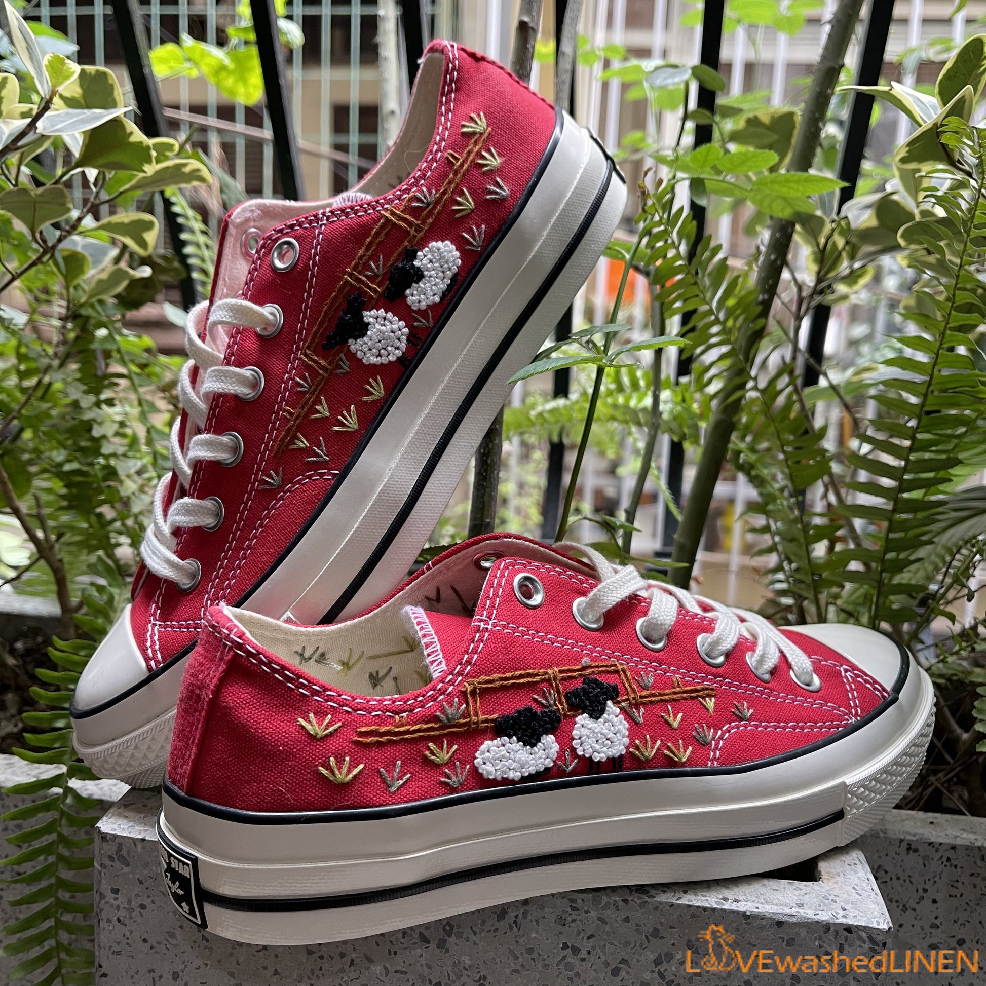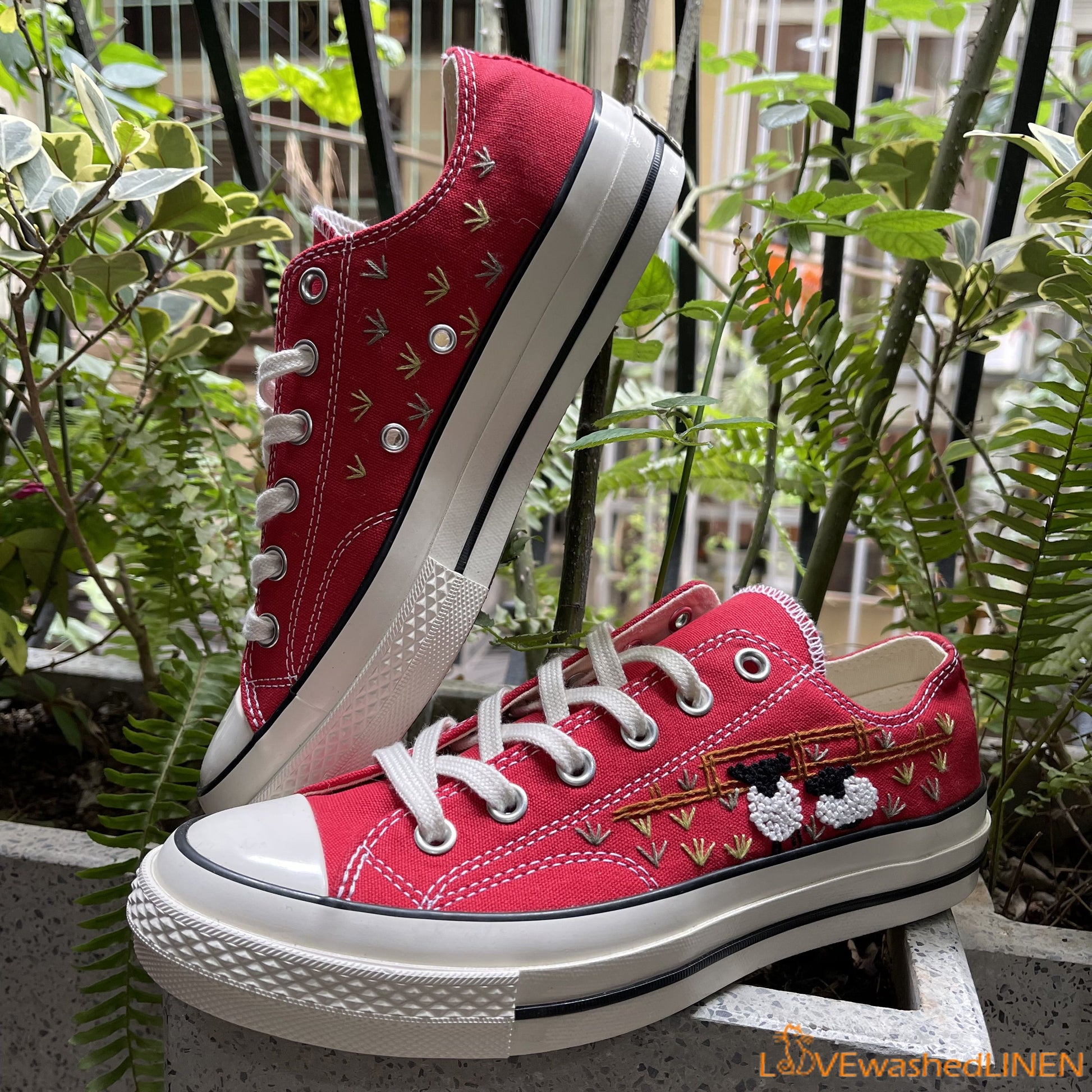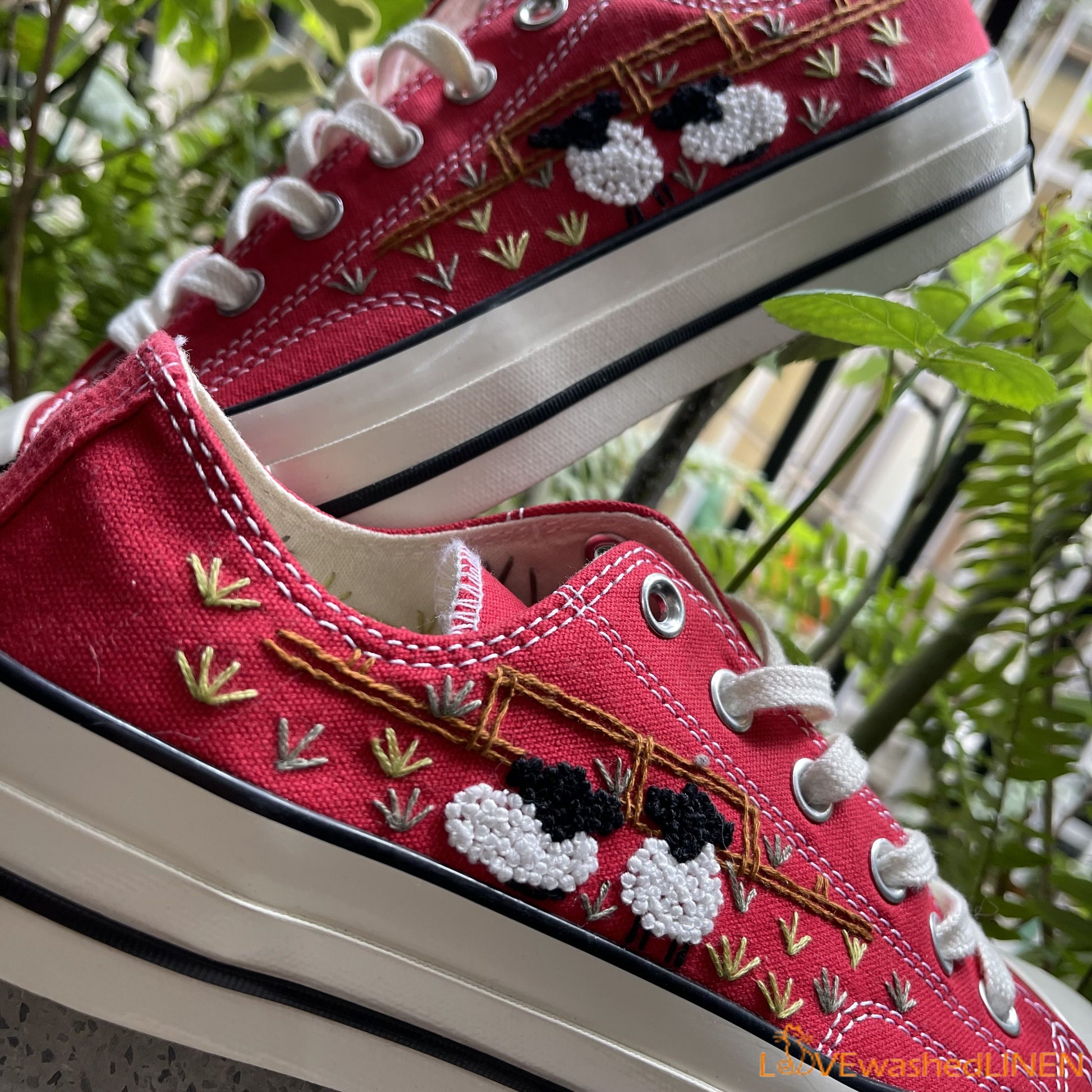 Embroidered Converse/ Custom Converse Chuck Taylor Embroidered Lambs/ Embroidered Converse Low Tops / Embroidered Lambs Sneakers