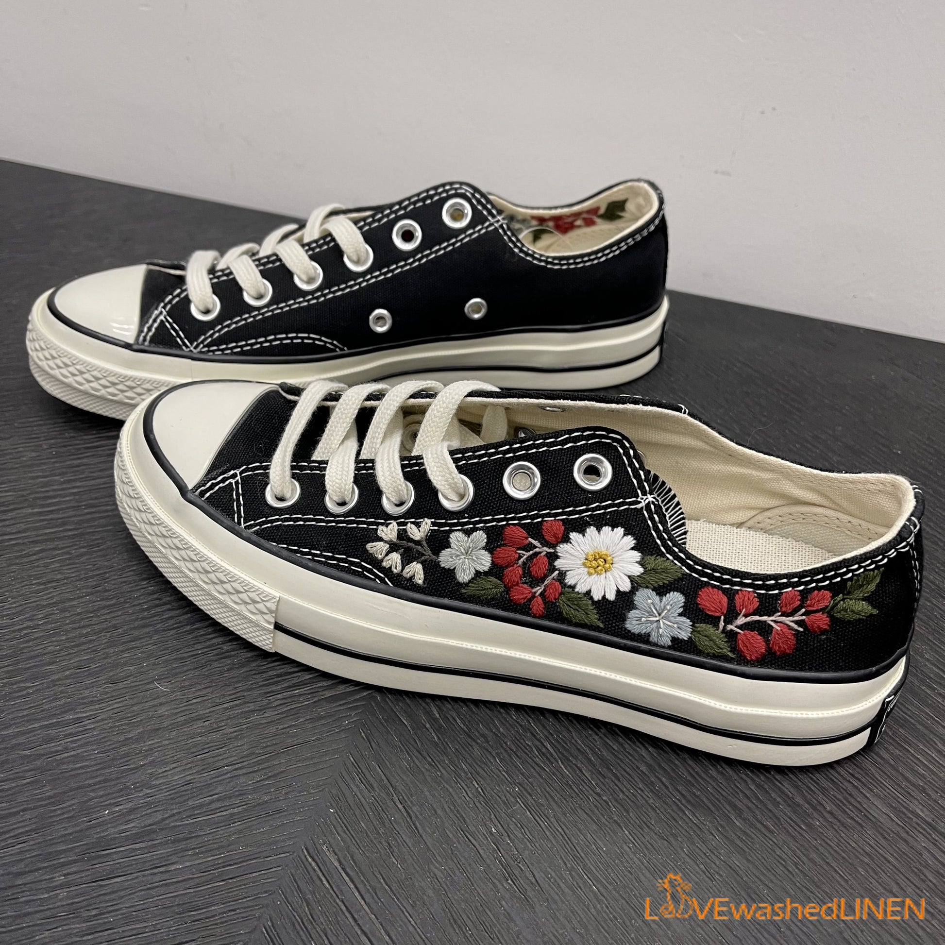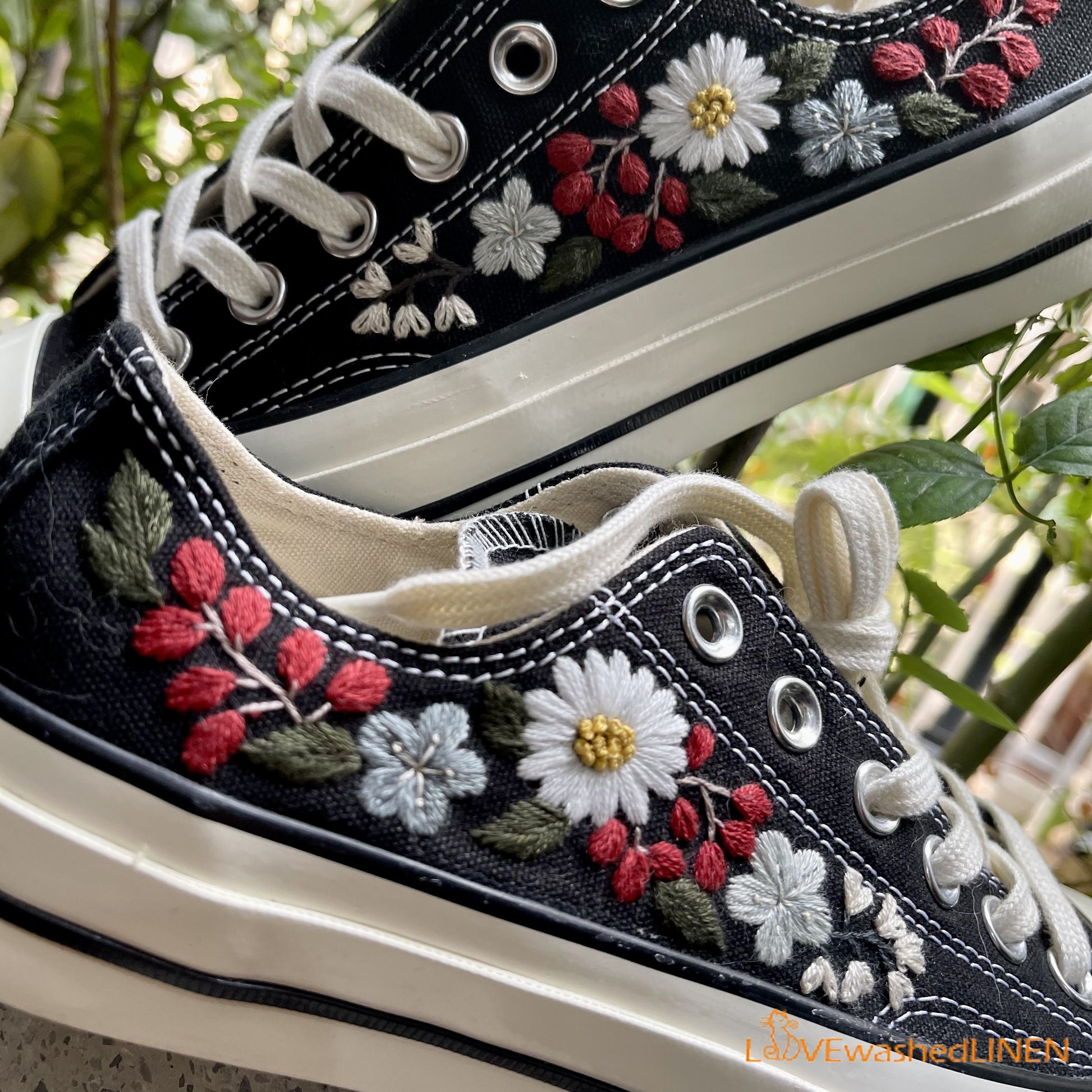 Embroidered Converse/ Custom Converse Chuck Taylor Embroidered Flower/ Flowers Embroidered Converse Low Tops/ Flowers Embroidered Shoes