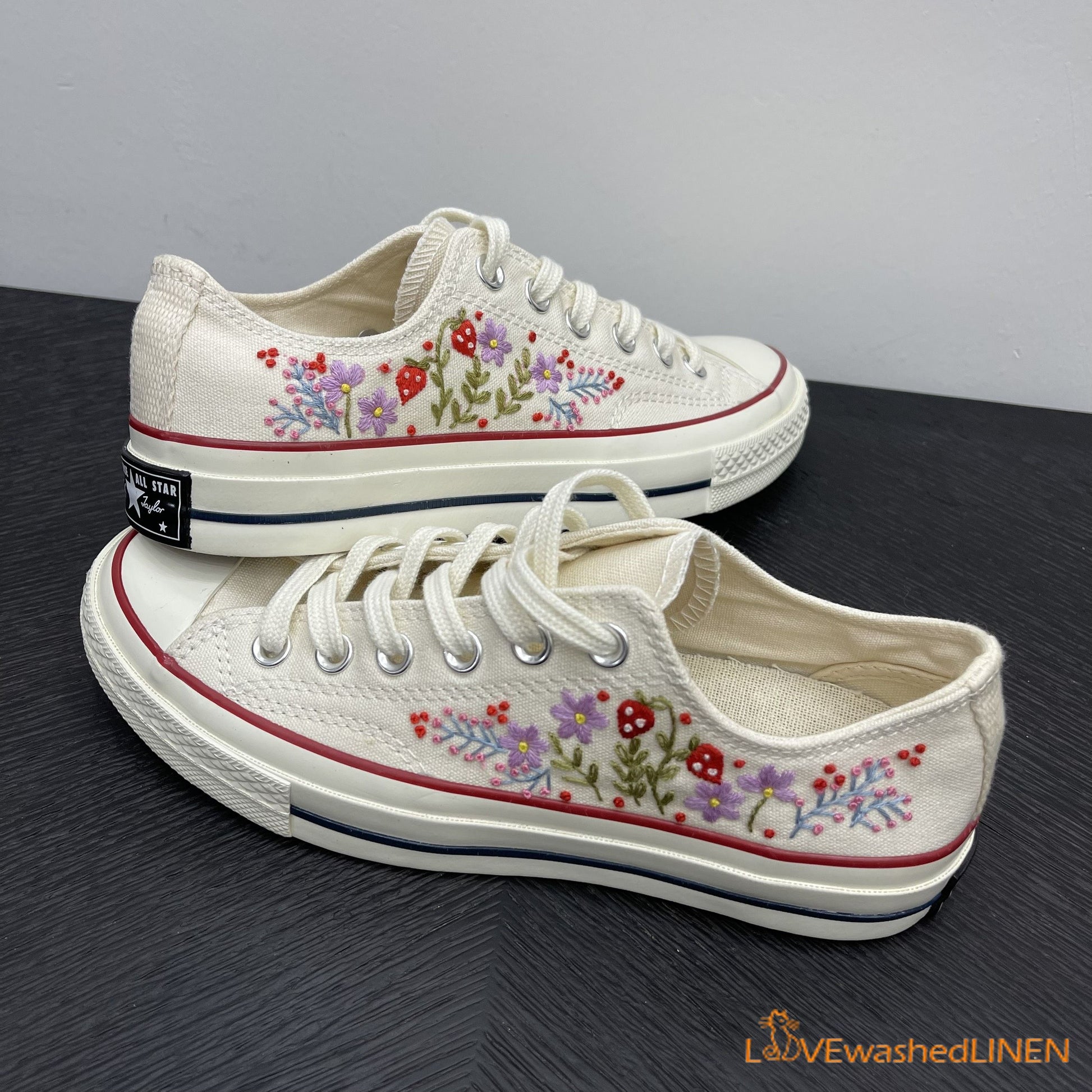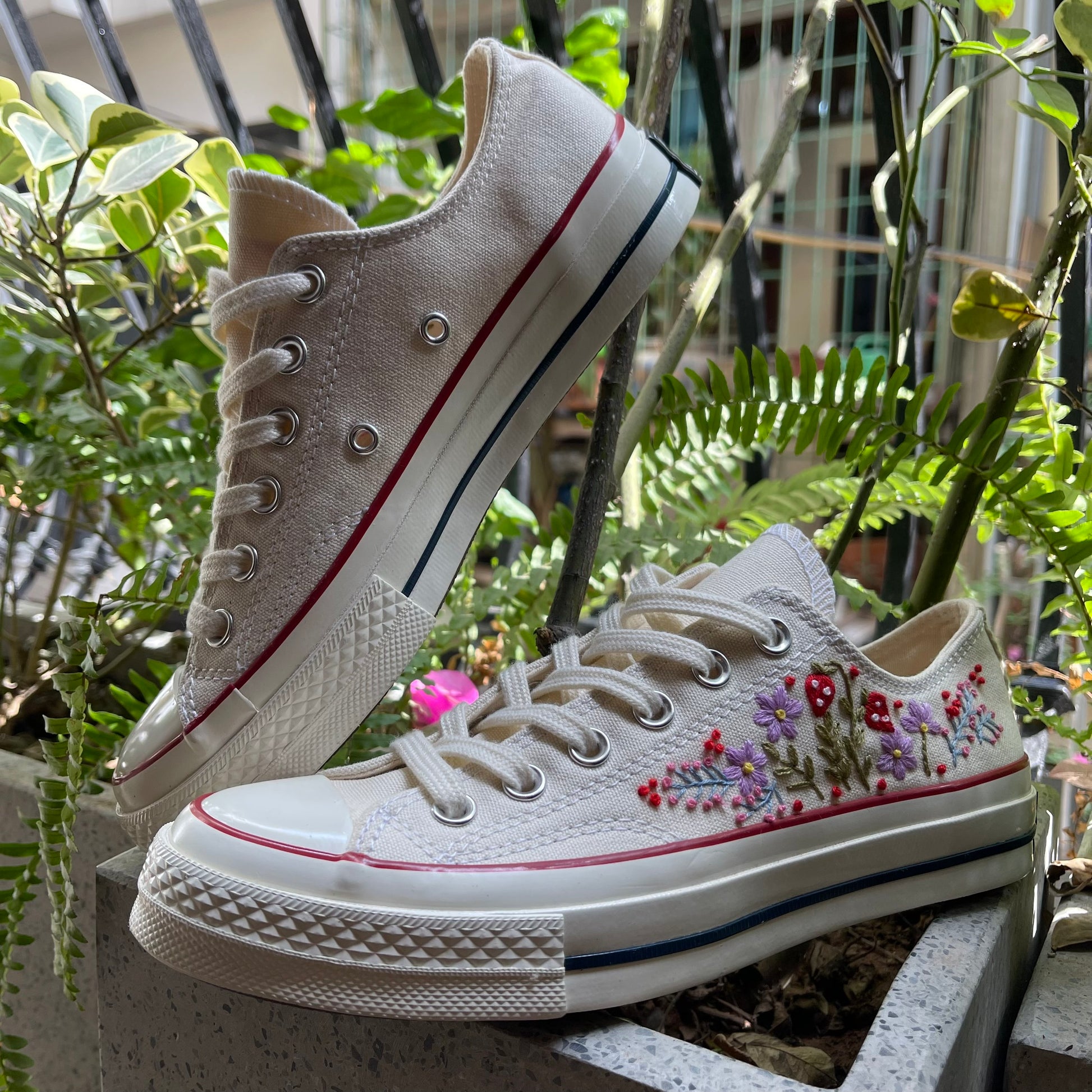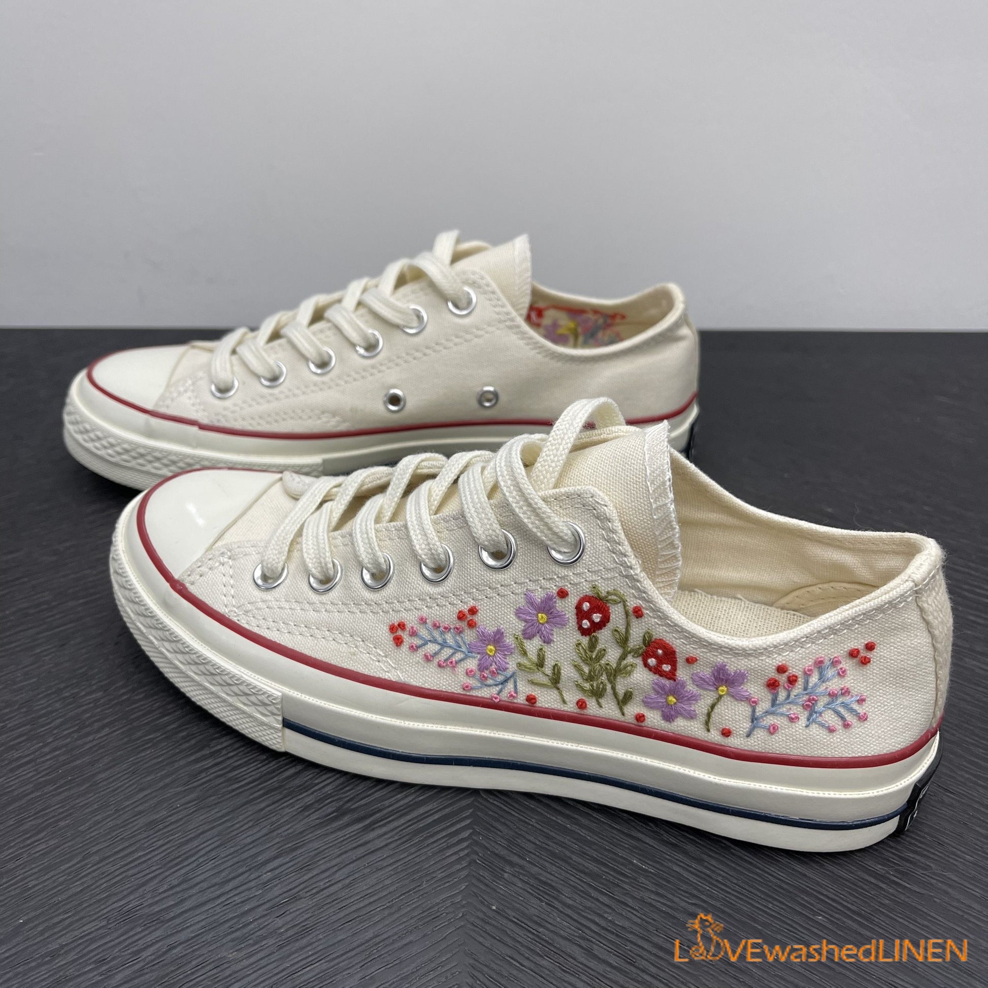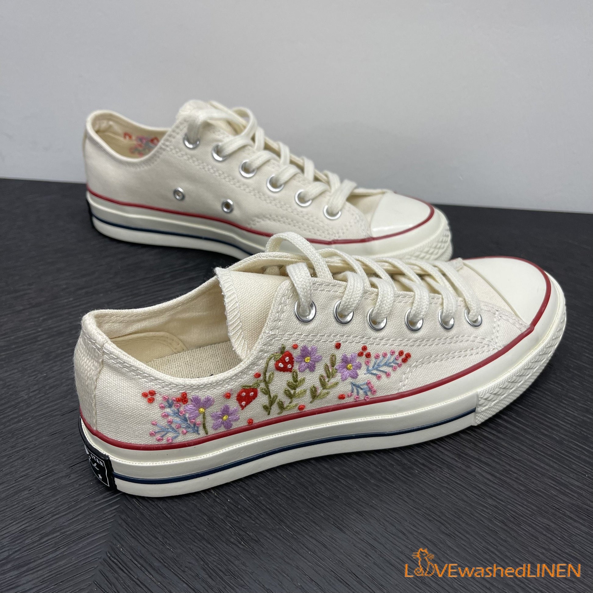 Embroidered Converse/ Custom Converse Chuck Taylor Embroidered Flowers/ Embroidered Converse Low Tops / Wedding Embroidered Shoes