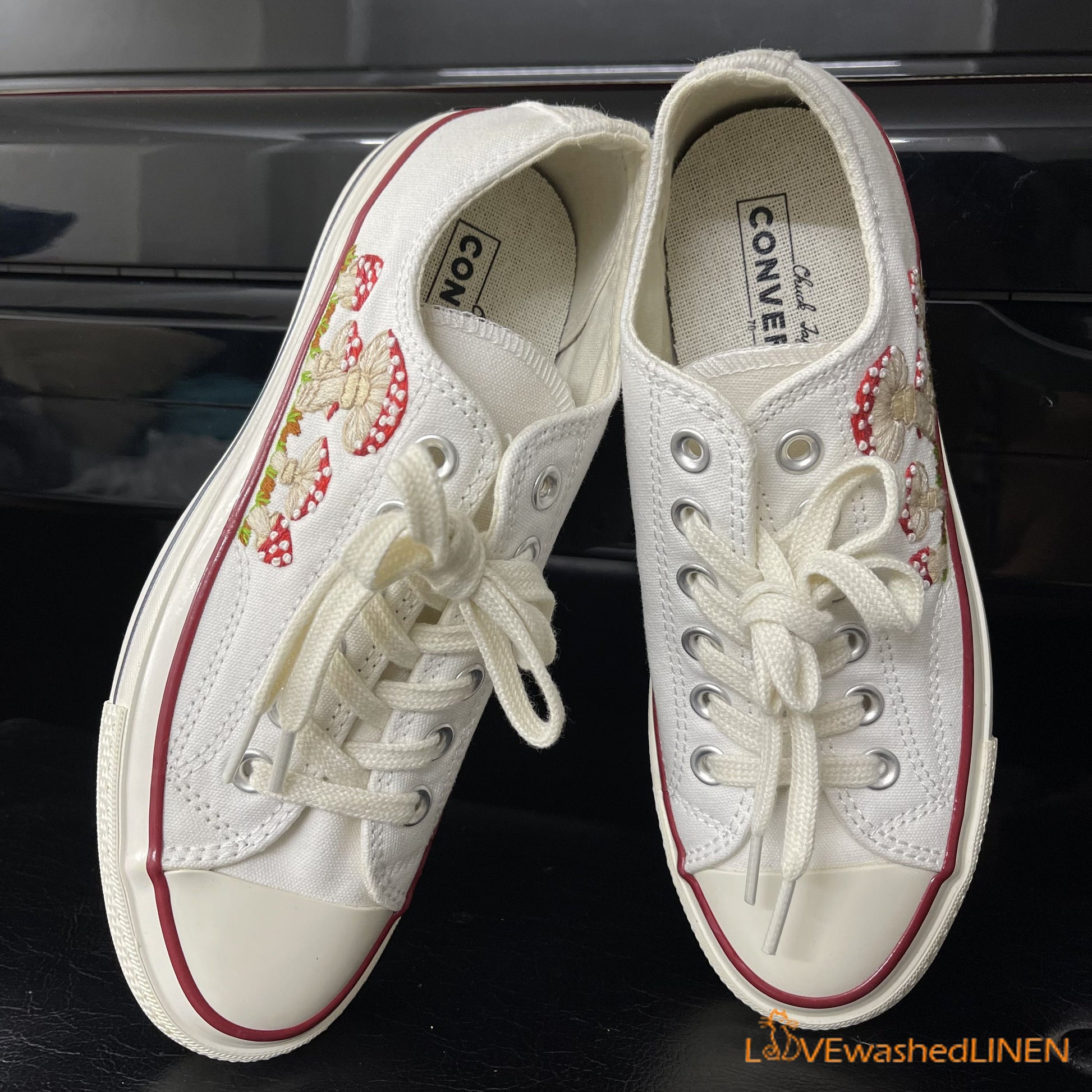 Embroidered Converse/ Custom Converse Chuck Taylor Embroidered Mushrooms/ Flowers Embroidered Converse Low Tops/ Mushrooms Embroidered Shoes