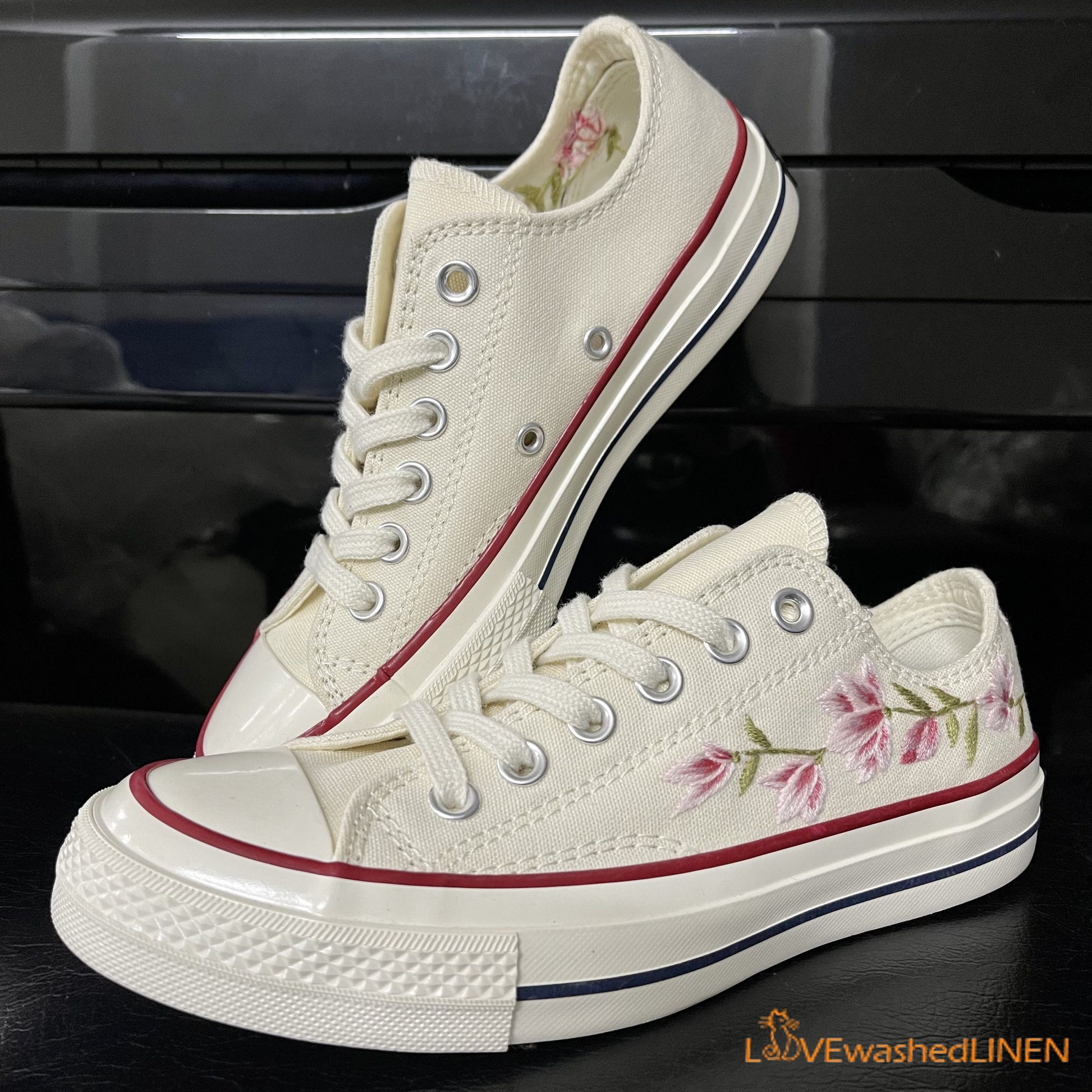 Embroidered Converse/ Custom Converse Chuck Taylor Magnolia Embroidered/ Magnolia Embroidered Converse Low Tops/ Embroidered Sneakers